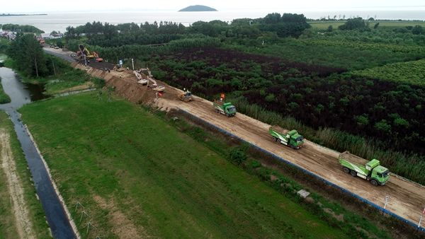 24日,環(huán)巢湖大道杭埠河堤壩上一片忙碌,路橋的抗洪尖兵們要和不斷上漲的湖水搶時(shí)間。從23日凌晨1時(shí)到24日17時(shí),經(jīng)過(guò)40多個(gè)小時(shí)的連續(xù)作業(yè),安徽路橋順利完成道路抬升任務(wù),基本具備通行條件。但是為進(jìn)一步提高通行舒適性和道路、堤壩耐久性,突擊隊(duì)伍繼續(xù)戰(zhàn)斗,開(kāi)始道路水穩(wěn)施工。