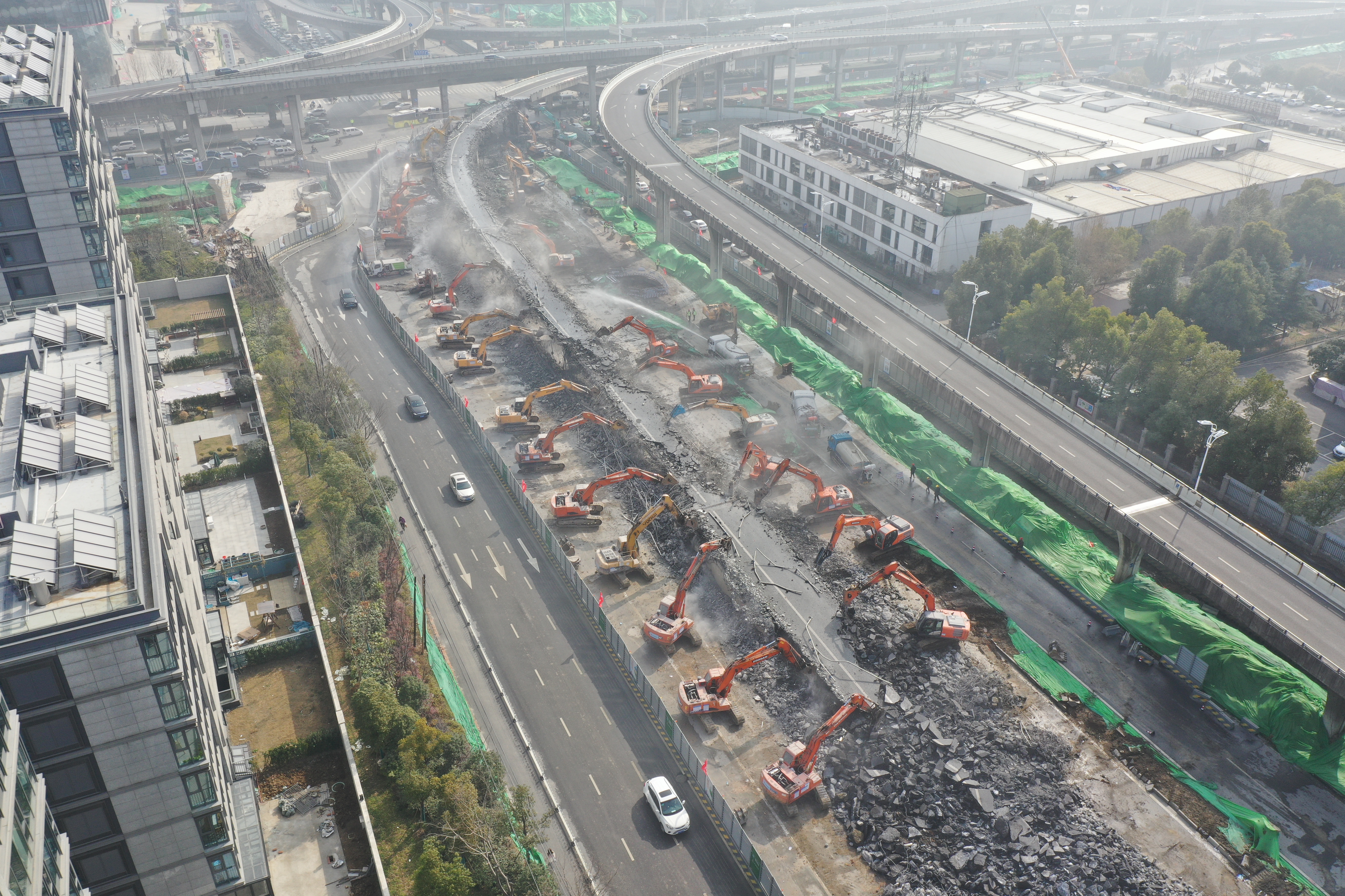 2021年2月3日,安徽建工路橋僅用15小時(shí)完成原計(jì)劃兩天的合肥金寨路高架南向西至南二環(huán)左轉(zhuǎn)匝道拆除任務(wù)。