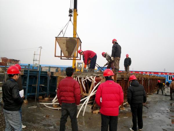 我部人員自正月初八進(jìn)場(chǎng)以來,克服近半個(gè)月的連續(xù)陰雨天氣,精心準(zhǔn)備,合理組織,完成了預(yù)制場(chǎng)建設(shè)、材料進(jìn)場(chǎng)、設(shè)備標(biāo)定調(diào)試、標(biāo)準(zhǔn)實(shí)驗(yàn)等一系列工作,從而保證了此次箱梁的順利澆筑。此次澆筑,是我部拌合站建成以來,首次投入正式結(jié)構(gòu)工程的生產(chǎn),也拉開了下一步規(guī)模生產(chǎn)的序幕。