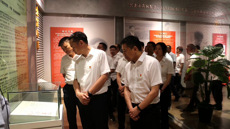 在大包干紀(jì)念館,大家認(rèn)真觀看圖文資料和原景復(fù)原模型,深入了解小崗村掀起中國(guó)農(nóng)村改革序幕的歷程,深切感受改革開放四十多年來小崗村發(fā)生的翻天覆地變化,進(jìn)一步感悟了“改革創(chuàng)新、敢為人先”的小崗精神。在沈浩同志先進(jìn)事跡陳列館,大家仔細(xì)觀看了沈浩同志在小崗村工作和生活過程中留下的文字、圖片和實(shí)物資料,深入了解了沈浩同志“兩任村干部瀝血嘔心帶領(lǐng)一方求發(fā)展,六載離家鞠躬盡瘁引導(dǎo)萬民奔小康”的感人事跡,真切感受到沈浩同志扎根基層、銳意進(jìn)取、一心為民、公而忘私的精神品質(zhì)。在陳列館南廣場(chǎng),全體黨員重溫了入黨誓詞。