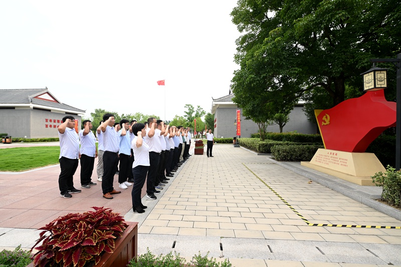合肥黨史館位于肥東縣白龍鎮(zhèn)青龍廠社區(qū)褚老圩組,是合肥市首個(gè)全黨史脈絡(luò)紅色歷史場(chǎng)館,大家一邊認(rèn)真聆聽(tīng)講解,一邊駐足觀看,身臨其境地進(jìn)行了一場(chǎng)黨史學(xué)習(xí)之旅,更加深入地了解合肥紅色故事。參觀結(jié)束后,雙方黨員共同重溫了入黨誓詞。