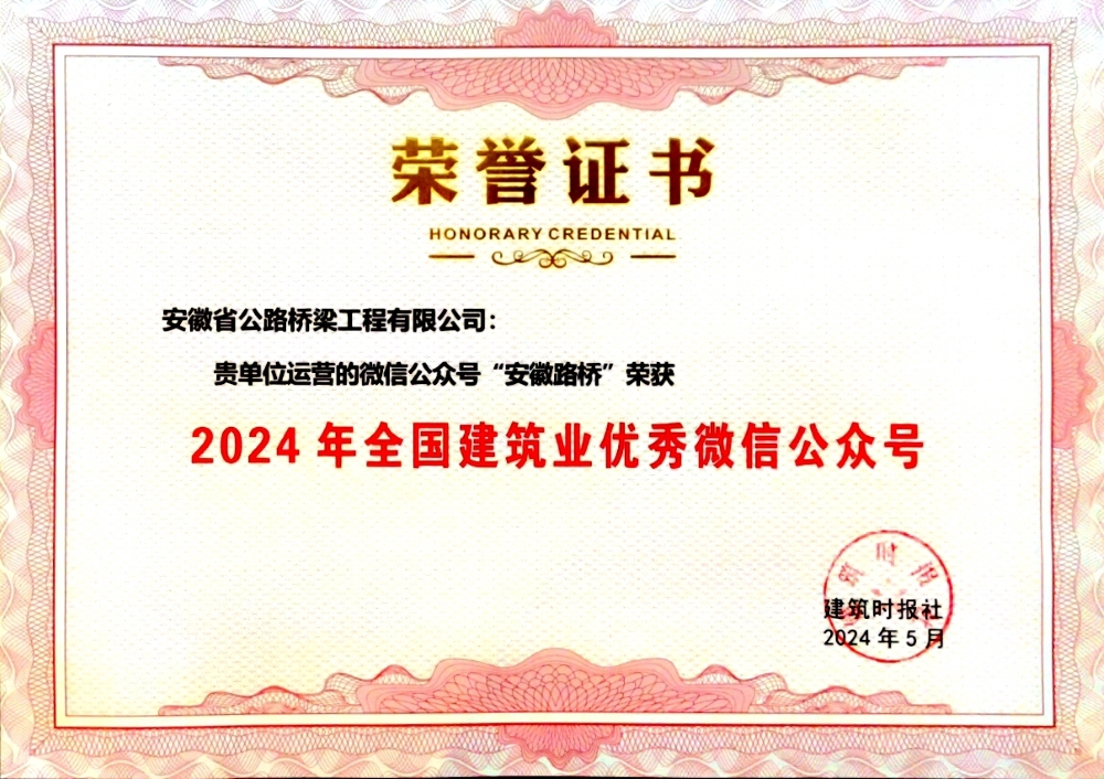 公司微信公眾號(hào)榮獲“2024年全國(guó)建筑業(yè)優(yōu)秀微信公眾號(hào)”